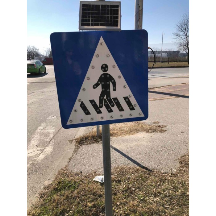 Соларен пътен знак Д-17 с 3M фолио. Цени от 460-490лв без ДДС.